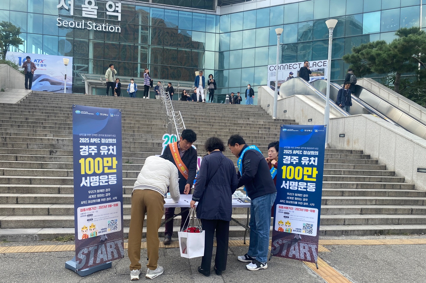 서울역을 방문한 많은 시민들은 2025 APEC 정상회의가 가장 한국적인 도시, 경주에서 열려야 한다는데 공감하며, 서명운동에 적극 동참했다.