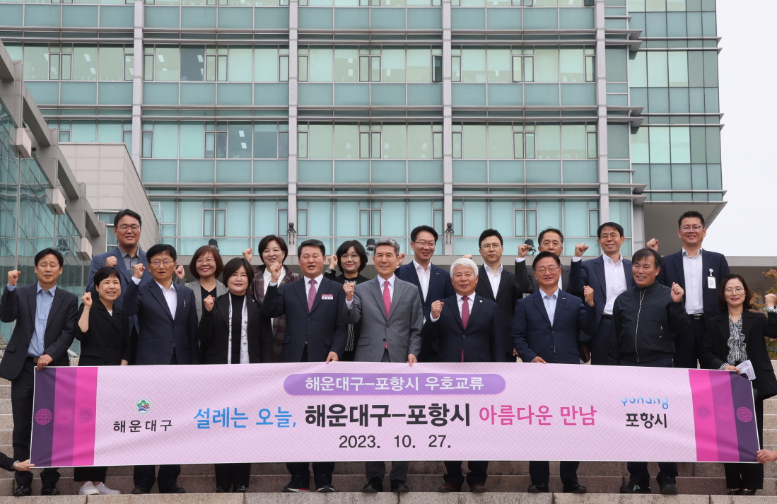포항시와 부산 해운대구는 27일 시청 대회의실에서 지역 공동발전을 위한 우호 협력 교류 협약식을 개최했다.
