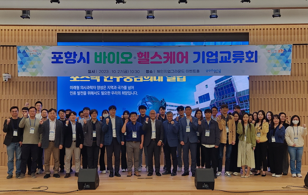 포항시는 기업 간 협력 체계 구축을 통한 동반성장을 도모하고 포항시 바이오산업 생태계를 구축하기 위해 27일 체인지업그라운드에서 ‘포항시 바이오·헬스케어 기업교류회’를 개최했다.