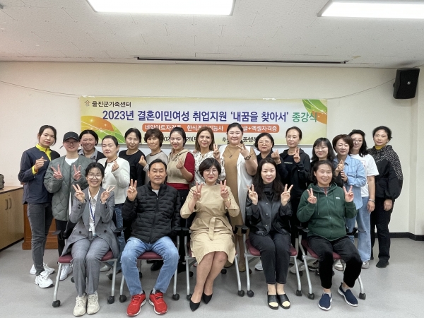 [금요저널] 울진군은 지난 28일 울진군가족센터가 울진군평생학습관에서 결혼이민여성 30여명과 함께 취업교육 ‘내 꿈을 찾아서’ 종강식을 가졌다고 전했다.