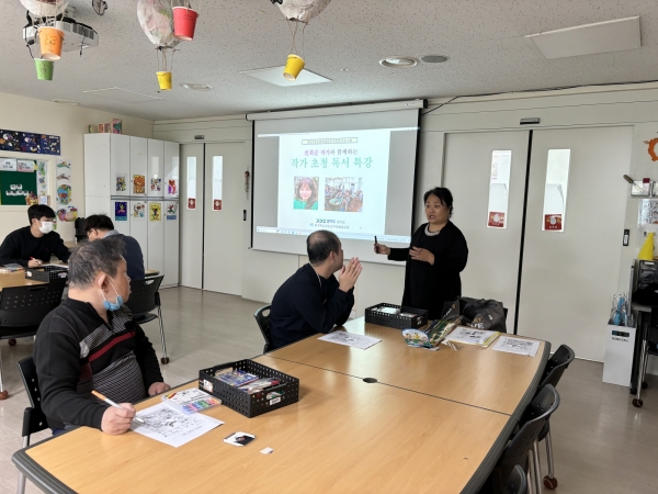 [금요저널] 의왕시 글로벌도서관은 지난 27일 희망나래장애복지관과 장애인주간보호시설에서 ‘정보취약계층 독서문화프로그램’의 일환으로 ‘작가와의 만남’을 진행했다.