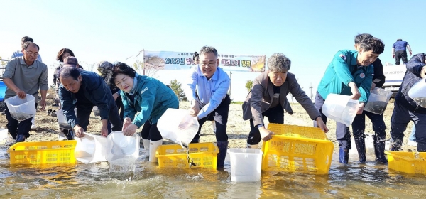 방류행사에는 경상북도의회 농수산위원회 남영숙 위원장을 비롯해 김중권 경상북도청 환동해본부장, 상주시 공무원, 지역주민 등 20여명이 참여했다.