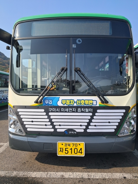 [금요저널] 구미시는 관내 운행 중인 시내버스 12대에 ‘미세먼지 흡착 필터'를 부착해 2일부터 1년간 시범 운행한다.