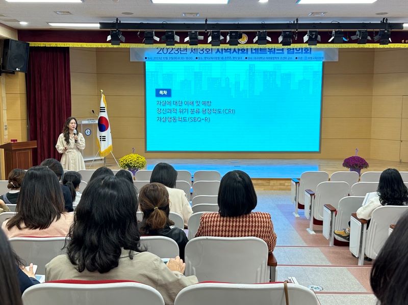 □ 이날 지역사회 네트워크 협의회는 포항과 영덕 지역기관 담당자들의 업무적 교류 및 역량강화를 위한 자리로 대구대학교 미래융합학부 조선미 교수님을 초빙하여 응급정신건강상담연수(자살위기 위험성평가 및 대응방안)을 주제로 학교 현장 및 지역기관에 당면한 어려움에 대해 위기 학생들을 조기에 파악하여 병원에 연계할 수 있도록 강의가 진행되었고, 다양한 척도지를 활용하여 학교 현장 뿐만 아니라 지역기관에서도 대상자들에게 적용할 수 있어 지역사회의 기관 관계자에게도 도움이 되는 연수가 되었다.
