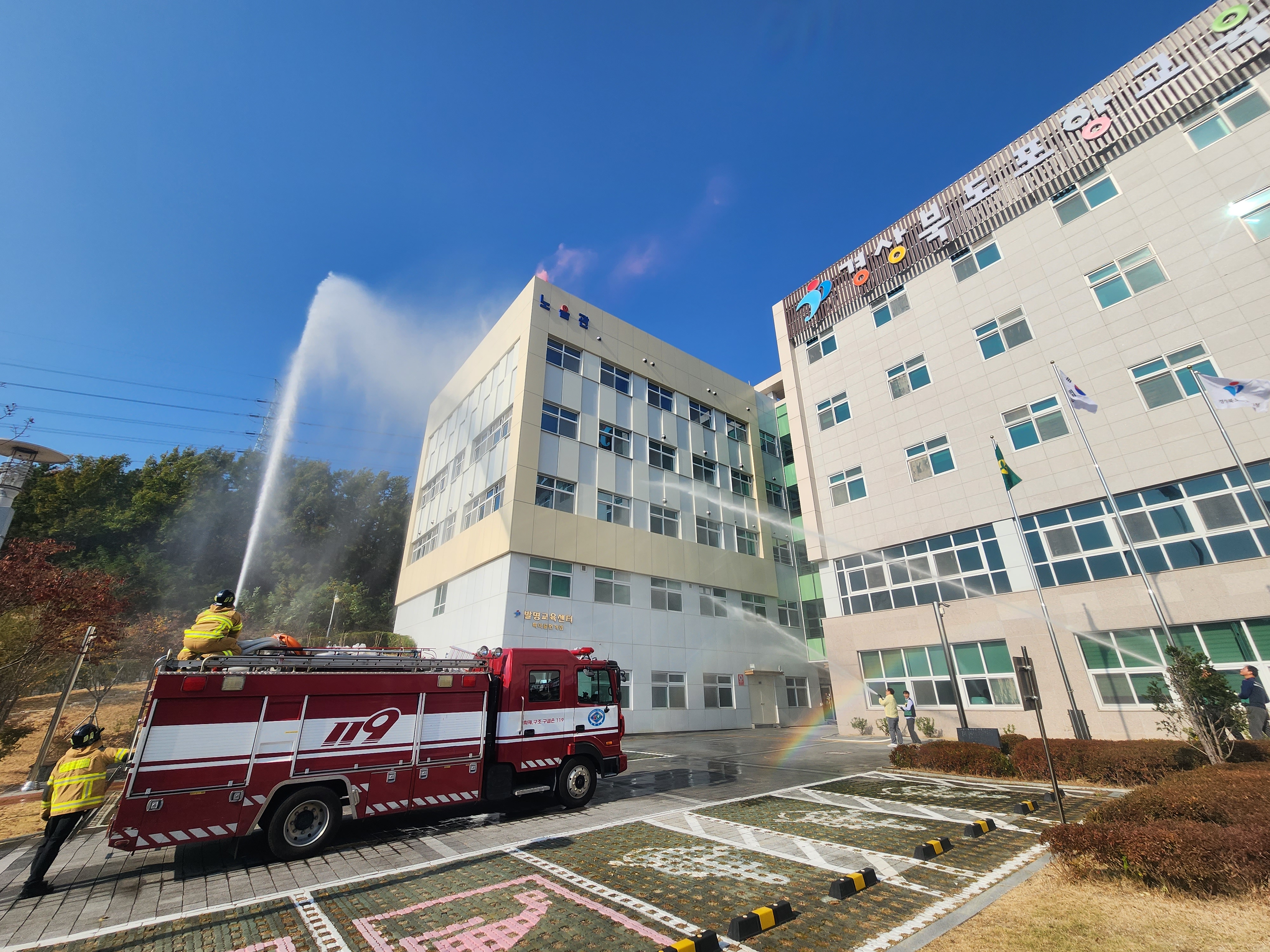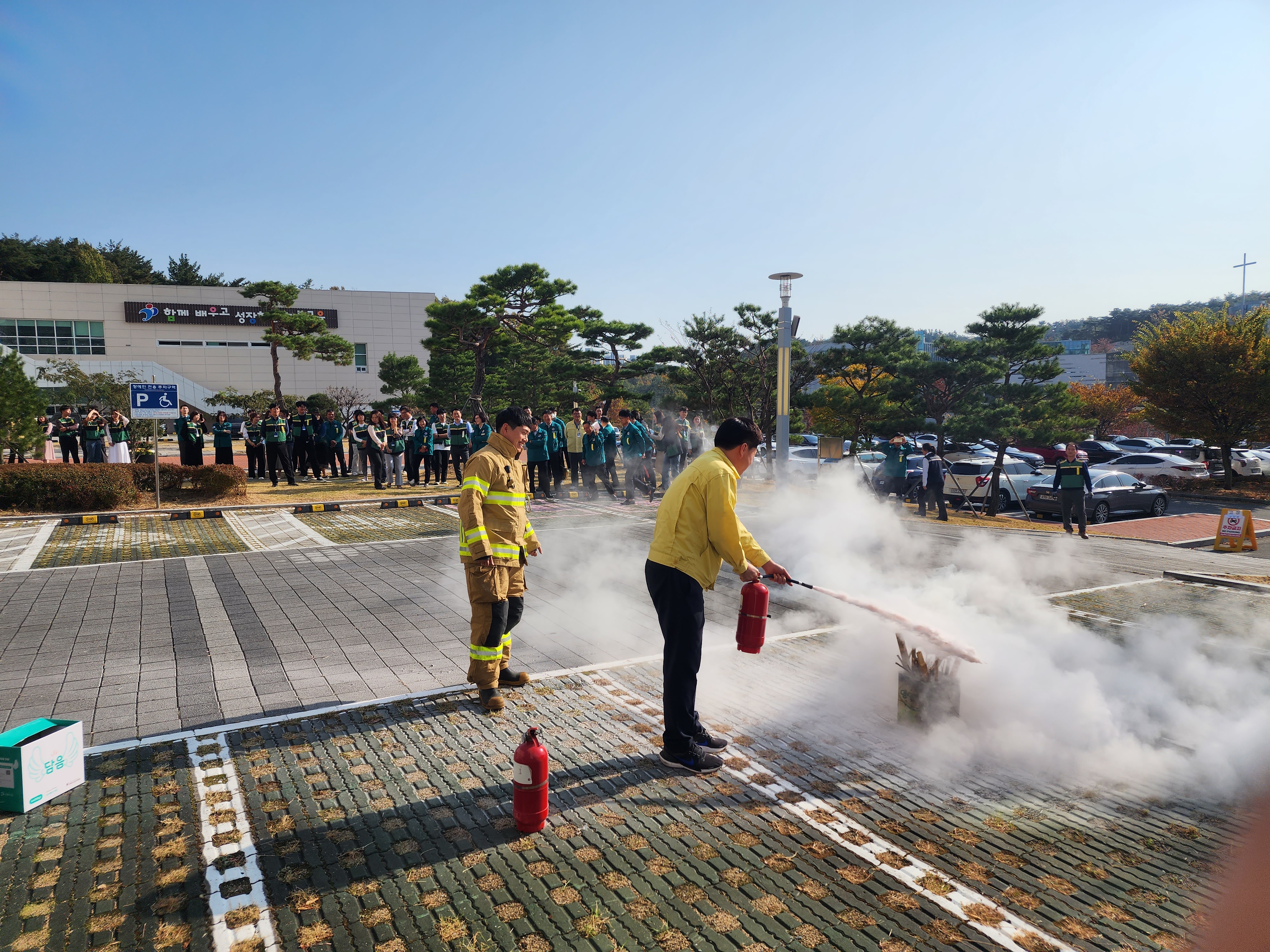 □ 또한, 장량119안전센터 소방대원들이 화재 대피 매뉴얼과 소화기 작동방법을 교육하고 청 직원들이 직접 실습해보며 화재 진압 능력을 배양하였다.