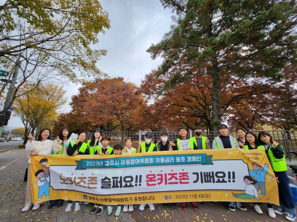 이날 캠페인은 경주의 대표 관광지인 황리단길에서 아동에 대한 차별적 요소인 ‘노키즈존’에 반대하고 NO라는 단어를 거꾸로 쓴 NO의 반대 개념인 ON을 사용한 ‘온키즈존’ 확산 운동을 펼쳤다.