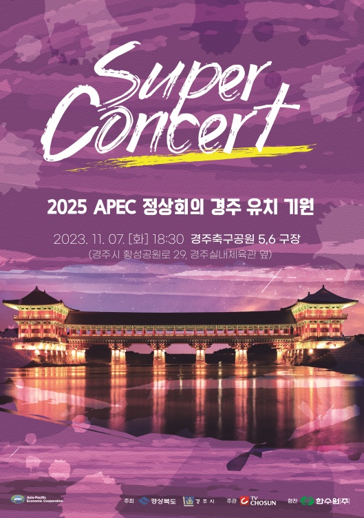 [금요저널] 경주시가 7일 저녁 6시 30분 경주축구공원 5·6구장 특설무대에서 ‘2025 APEC 정상회의 경주 유치 기원 슈퍼콘서트’를 개최한다.