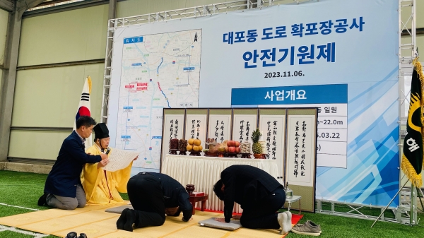이천시는 대포동 도로확포장공사 대포동 679-1번지에서 “무사고 ·무재해”를 다짐하는 안전기원제를 열었다.