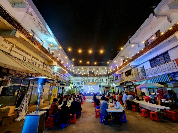 이번 행사는 도시재생사업의 거점인 원종중앙시장에서 열렸는데, 노후화된 시장에 알전구와 조명 장비를 설치해 원종중앙시장 중정만의 복고풍 감성을 살렸다.