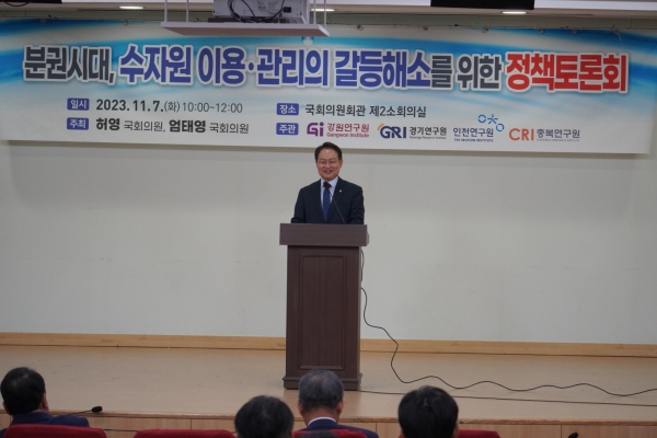 [금요저널] 더불어민주당 허영 의원이 7일 국회의원회관 제2소회의실에서 ‘분권시대, 수자원 이용·관리의 갈등 해소를 위한 정책토론회’를 개최했다.