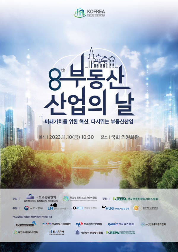[금요저널] 국토교통부는 11월 10일 오전 10시 30분부터 국회 의원회관에서 부동산산업의 새로운 도약과 미래 발전을 모색하는 ‘제8회 부동산산업의 날’ 기념식이 열릴 예정이라고 밝혔다.