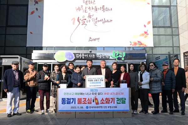 차준택 구청장은 “화재 예방을 위한 지회의 관심에 감사드리며 관내 화재 취약 계층에 전달하겠다”며 “안전하고 편안한 부평구가 되도록 구에서도 최선을 다할 것”이라고 말했다.