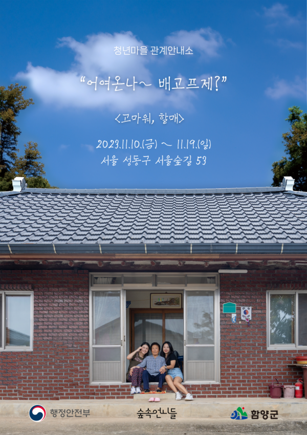 [금요저널] 행정안전부는 11월 10일부터 11월 19일까지, 서울 성수동에서 경남 함양 ‘고마워, 할매’‘청년마을 관계안내소’를 운영한다고 밝혔다.