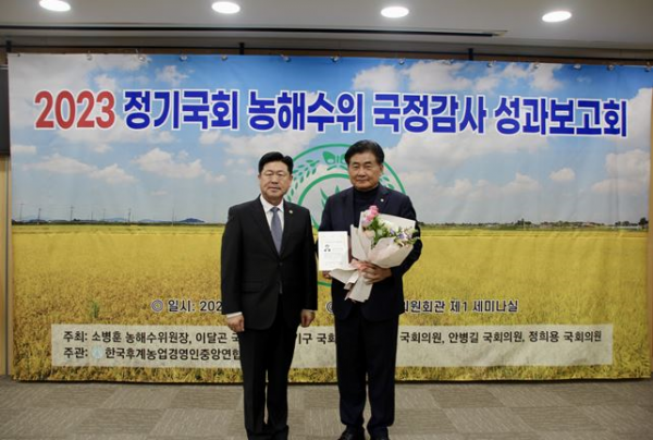 [금요저널] 국회 농림축산식품해양수산위원회 소병훈 위원장이 9일 한국후계농업경영인중앙연합회가 선정한 ‘2023 한농연 우수 국감의원’을 수상했다고 밝혔다.