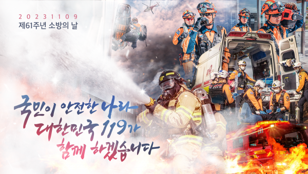 [금요저널] 소방청은 11월 9일 오전 10시 30분 서울 용산구‘용산어린이정원’에서“국민이 안전한 나라 대한민국 119가 함께한다”를 주제로‘제61주년 소방의 날’기념식을 개최했다.