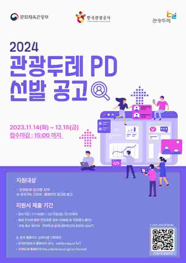 [금요저널] 문화체육관광부와 한국관광공사는 11월 14일부터 12월 15일까지 지역 고유 관광사업을 함께 만들어갈 ‘2024년도 관광두레 피디’를 공모한다.