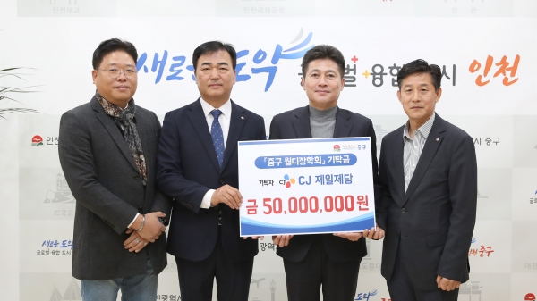 [금요저널] 인천 중구 월디장학회는 CJ제일제당 인천 2공장과 식품냉동 인천공장으로부터 5,000만원의 장학금을 기탁받았다.