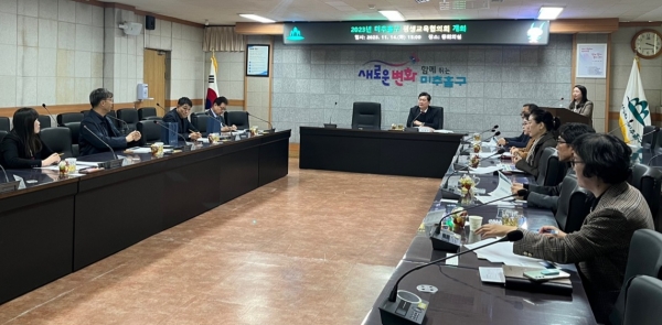 [금요저널] 인천 미추홀구는 지난 14일 구청 중회의실에서 남부교육지원청 교육장, 인하대학교 평생교육원장, 미추홀노인복지관장 등 지역 평생교육기관의 단체장 10여명이 참석한 가운데 ‘2023년 미추홀구 평생교육협의회’를 개최했다.