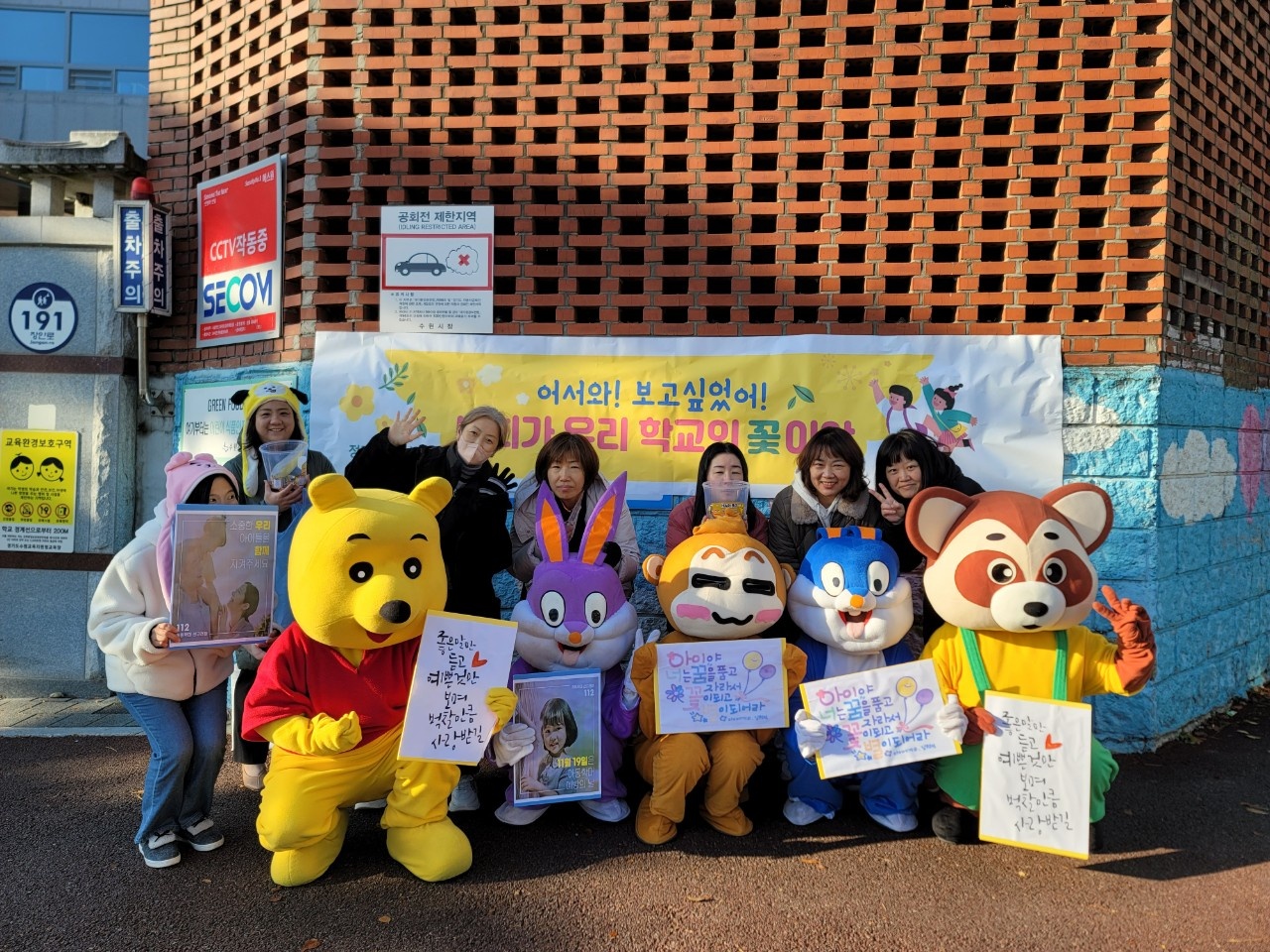 특히, 학부모회 소속 학부모들은 학생들이 좋아하는 다양한 캐릭터의 인형탈 착용 및 스스로 제작한 피켓으로 재치가 넘치는 등굣길 활동 시행을 통해 학생들의 공감을 유도하였다.