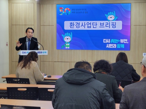 부천시 환경사업단은 22일 시정 브리핑을 열고 굴포하수처리장 환경개선 약대오거리 일원 도시침수 예방 자원순환센터 현대화 상수도 스마트검침 시스템 구축 등 추진 사업을 설명했다.