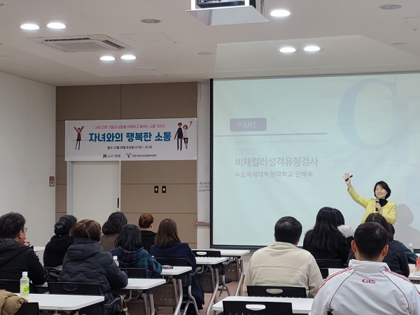 이날 교육은 한국예술심리상담협회 안혜숙 소장의 강의로 진행되었는데, 안혜숙 소장은 컬러 성격유형에 따른 부모-자녀 각자만의 컬러가 갖는 특성과 에너지 방향 이해를 통한 소통 가이드를 제시했다.
