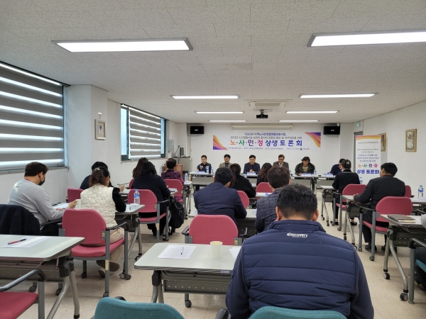 [금요저널] 이천시노사민정협의회는 11월22일 노인생활시설 숙련직 종사자 전문성 향상 및 처우개선 방안을 위한 노사민정 상생 토론회를 개최했다.