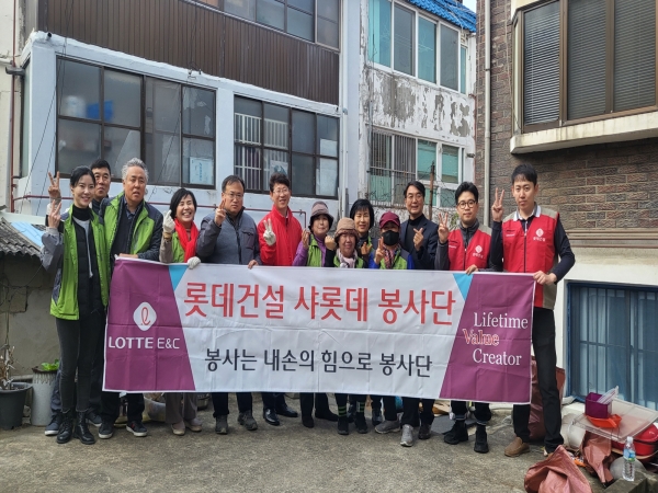 롯데건설 서성원 팀장은 “말끔해진 환경에 기뻐하는 어르신들을 보니 우리 봉사단이 지역에서 의미 있는 역할을 한 것 같아 보람차다”고 말했다.