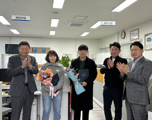 또한, 22일 특별히 한국지방세연구원 김민경 자치협력실장이 참석한 가운데 징수과 사무실 내에서 표창장 수여식을 진행했다.