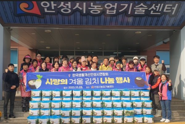 [금요저널] 한국생활개선안성시연합회는 지난 23일 안성시농업기술센터 생활과학관에서 지역 독거노인 및 취약계층을 위한 겨울김치 나눔행사를 실시했다.
