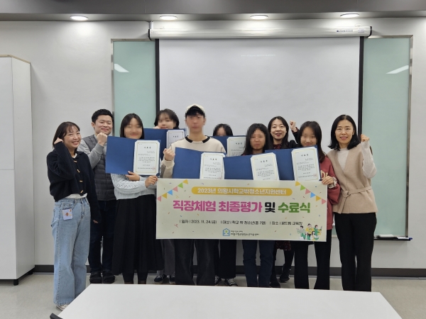 [금요저널] 의왕시학교밖청소년지원센터 꿈드림은 학교 밖 청소년들의 사회진출을 돕기 위한 ‘직장체험 프로그램’ 수료식을 24일 진행했다.