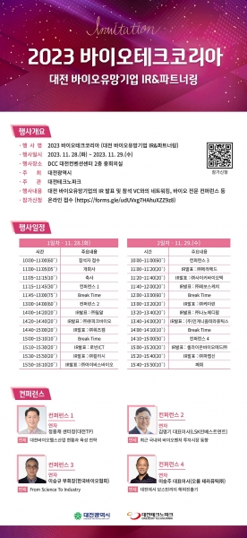 [금요저널] 대전시는 28일과 29일 이틀간 DCC 대전컨벤션센터에서 지역 유망 바이오 기업과 함께하는 ‘2023년 제3회 바이오테크코리아’행사를 개최했다.