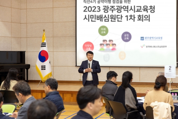 [금요저널] 광주시교육청이 지난 27일 직선 4기 공약이행사항 점검과 의견 수렴을 위해 시민평가배심원단 50명을 위촉하고 1차 회의를 개최했다.