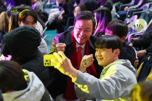 이날 힐링콘서트는 관내 고3 청소년들과 내빈 등 700여명이 참여한 가운데 성결대학교 페가수스 응원단의 사전 공연을 시작으로 충주시 홍보맨으로 잘 알려진 김선태 주무관의 ‘네임드가 되는 법’을 주제로 한 진로 특강이 이어졌다.