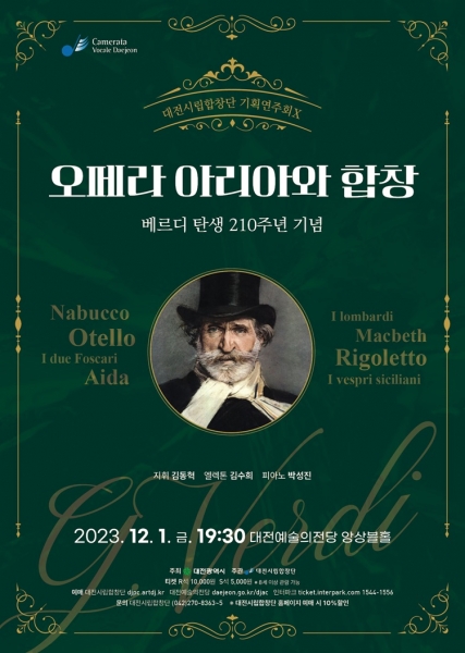 이번 연주회는 베르디 탄생 210주년을 맞아 그의 명작 나부코 맥베스 리골레토 오텔로 아이다 등 작품 속 주요 아리아와 합창곡을 한 무대에서 즐길 수 있다.