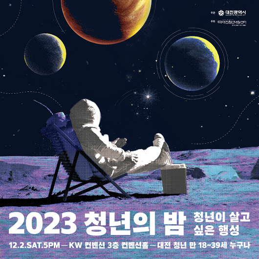 [금요저널] 대전시는 12월 2일 KW컨벤션에서 대전청년내일센터와 함께 ‘2023 청년의 밤’행사를 열고 올 한해 진행된 청년들의 활동을 격려하고 성과를 공유하는 시간을 갖는다.
