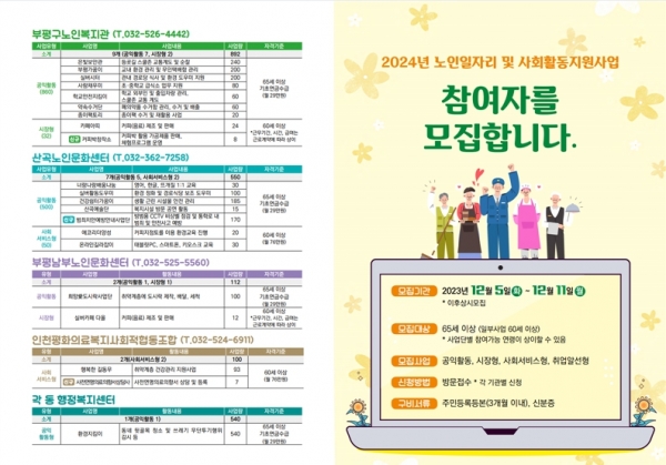 [금요저널] 부평구가 오는 12월 5일~11일까지 2024년도 노인일자리 및 사회활동 지원사업 참여자를 모집한다.