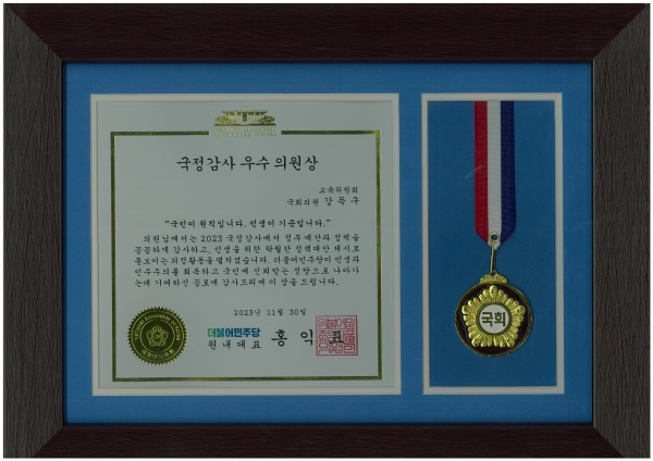 [금요저널] 국회 교육위원회 소속인 강득구 의원이 더불어민주당이 선정한 ‘2023 국정감사 우수의원상’을 수상했다.
