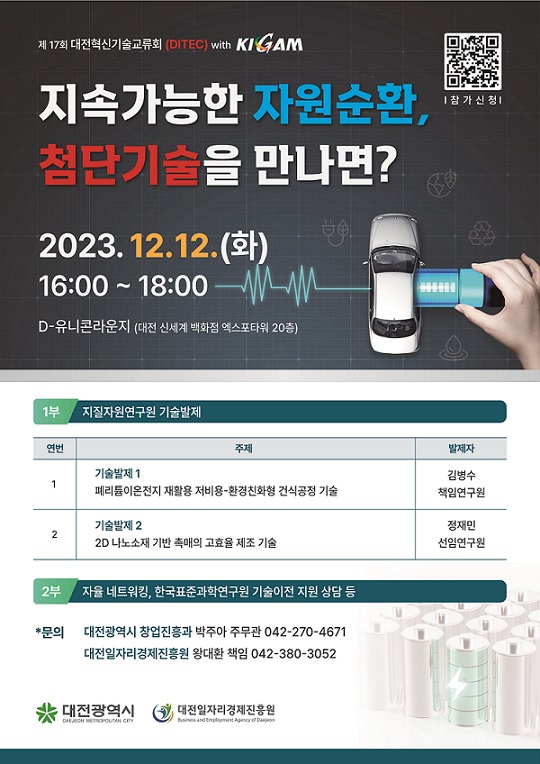 참여 신청은 대전시 중소기업지원 포털 대전비즈를 통해 12월 5일부터 11일까지 온라인으로 접수하거나, 네이버폼, 또는 포스터 상단 QR코드에서 가능하다.