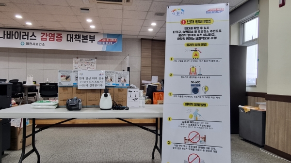 이천시는 시민의 피해 방지를 위해 빈대 발견 시 신고할 수 있는 신고센터를 24시간 운영해 일상적으로 방역할 수 있는 방법 교육 및 민간방역전문업체 연계를 진행하고 있으며 민간방역 전문업체를 이용할 수 없는 시설에는 방역 장비 대여 및 방역물품 지원으로 시민이 스스로 방역에 참여하도록 하고 있다.