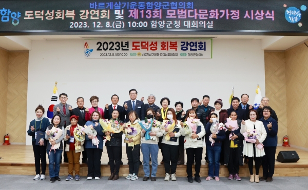 [금요저널] 바르게살기운동 함양군협의회는 8일 군청 대회의실에서 도덕성 회복 강연회 및 제13회 모범다문화가정 시상식을 개최했다.