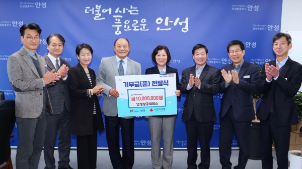 [금요저널] 안성시는 지난 12일 안성상공회의소에서 연말연시를 맞이해 이웃사랑을 위한 기부참여 및 나눔문화 확산을 위해 안성시를 방문해 경제적으로 어려움을 겪고 있는 안성 관내 취약계층을 위해 써 달라며 성금 1000만원을 기부했다고 밝혔다.