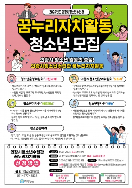 [금요저널] 의왕시청소년수련관은 ‘2024년 청소년 자치활동 및 동아리’ 참가 청소년을 모집한다.