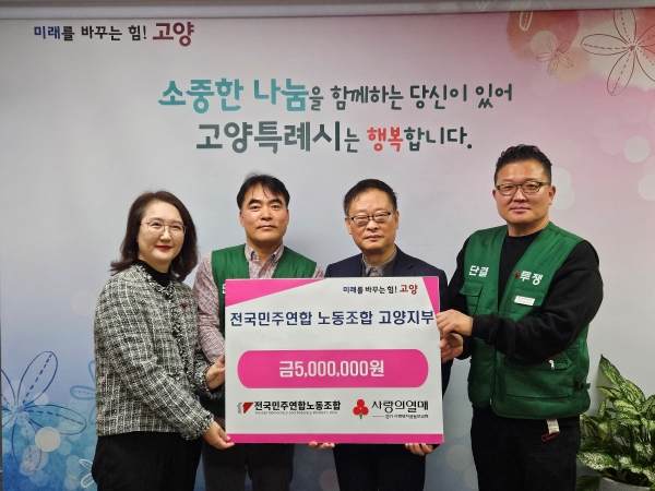 고양시 공무직 노동조합, 취약계층 위해 성금 500만원 전달