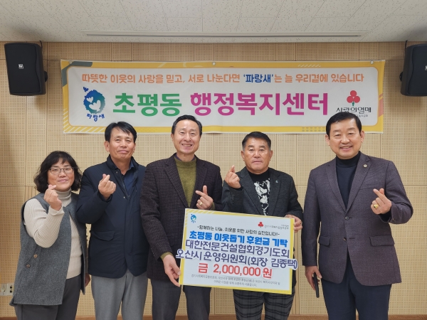 [금요저널] 오산시 초평동은 지난 14일 대한전문건설협회 경기도회 오산시운영위원회에서 후원금 200만원을 기탁했다고 밝혔다.