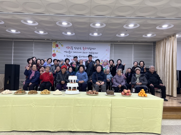 [금요저널] 이천시 호법면지역사회보장협의체에서는 12월 15일 호법복지관1층 식당에서 홀로 사시는 어르신 21명을 초대해 생신잔치를 개최했다.
