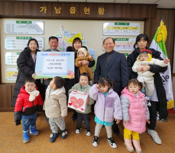 [금요저널] 지난 18일 가남읍 소재 포근한 어린이집에서 가남읍 행정복지센터를 방문해 원아 7명, 보육교사가 함께 따뜻한 마음을 담은 이웃돕기 성금 220,000원을 기탁 했다.