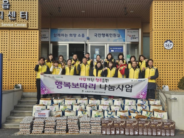 [금요저널] 소흘읍 행정복지센터는 소흘읍 지역사회보장협의체가 지난 19일 사랑듬뿍 행복가득 행복꾸러미전달 행사를 진행했다고 밝혔다.