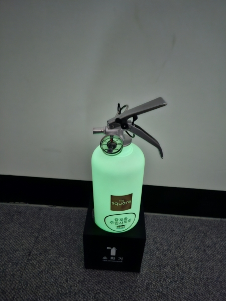야광소화기는 별도의 충전 필요 없이 외부의 빛을 흡수시킨 후 스스로 발광해 어두운 밤에도 쉽게 찾을 수 있다.