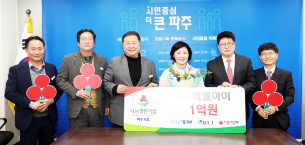 [금요저널] 파주시는 지난 20일 ㈜비.엘.아이로부터 기부금 1억원을 기탁 받았다고 밝혔다.