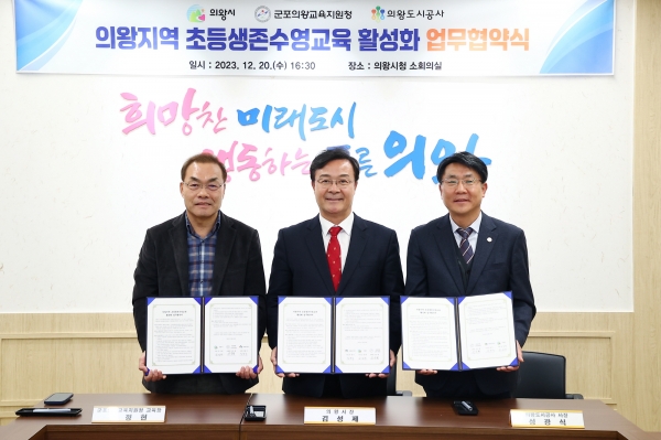 [금요저널] 의왕시는 군포의왕교육청 및 의왕도시공사와 ‘의왕 초등생존수영교육 활성화 업무협약'을 체결했다고 21일 밝혔다.